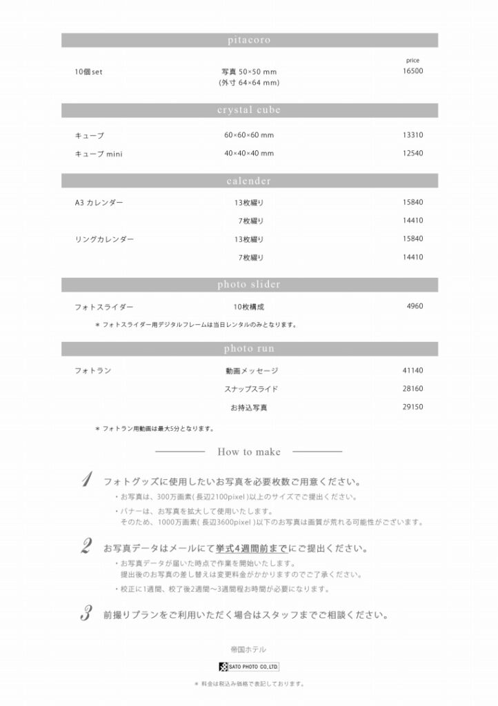 帝国ホテル東京 株式会社佐藤写真 商品のご案内
